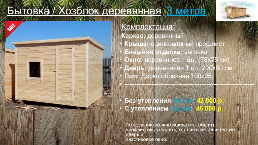 Слайд 4: Бытовка / Хозблок деревянная 3 метра метра