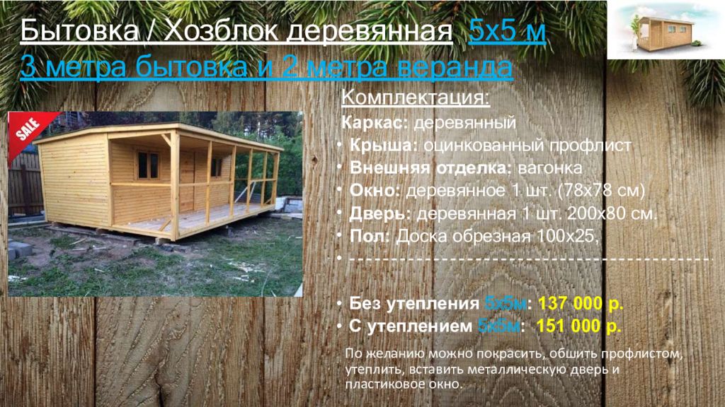 Слайд 10: Бытовка / Хозблок деревянная 5х5 м 3 метра бытовка и 2 метра веранда