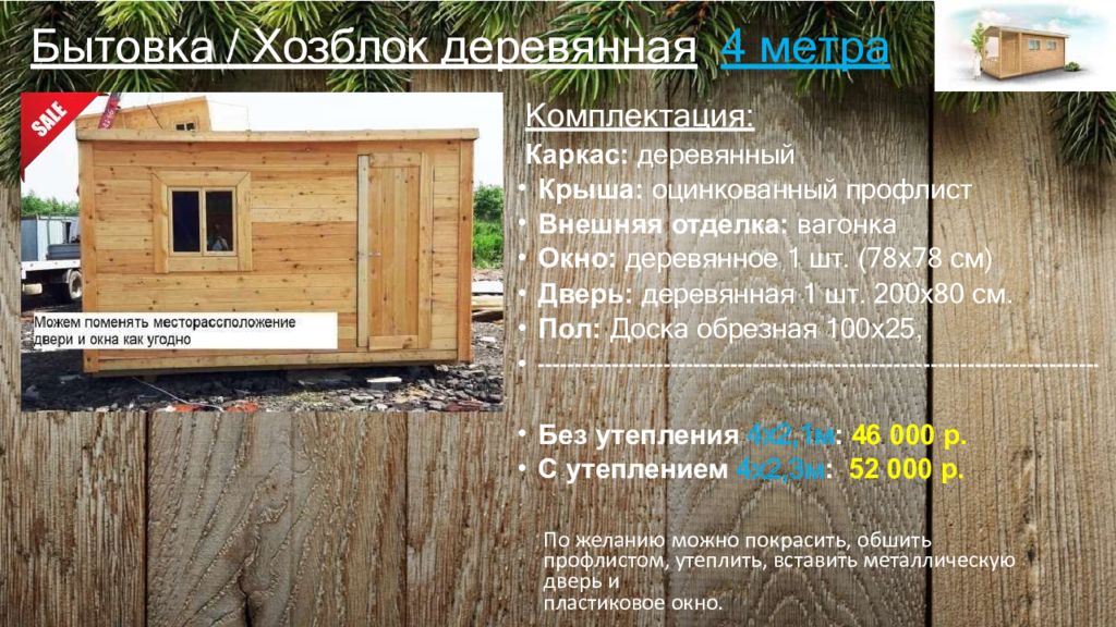 Слайд 5: Бытовка / Хозблок деревянная 4 метра