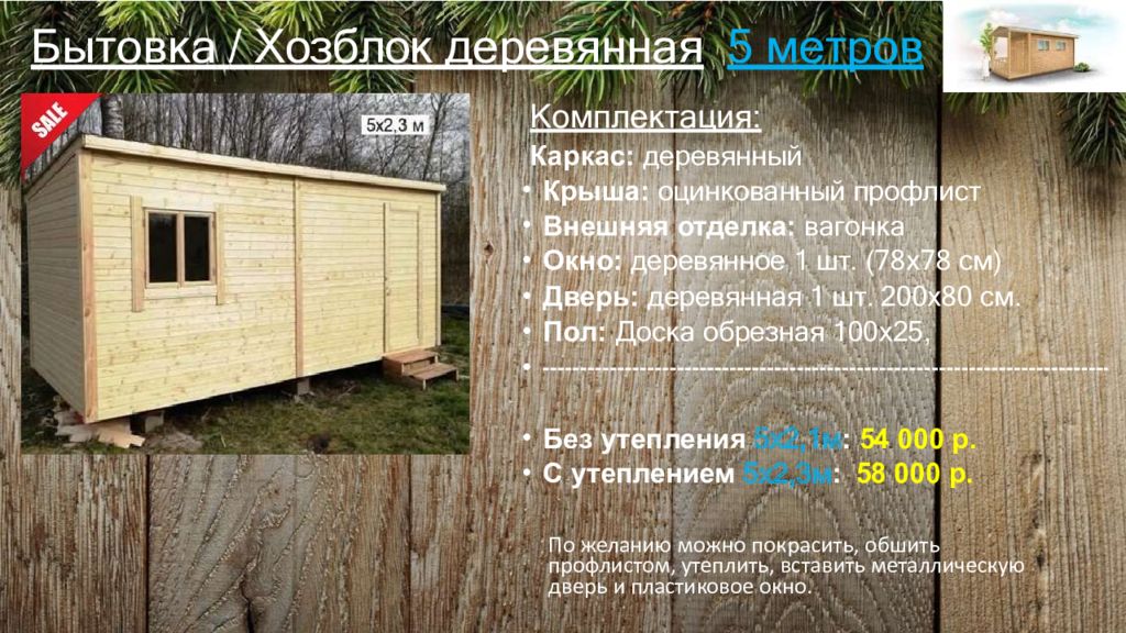 Слайд 6: Бытовка / Хозблок деревянная 5 метров метров