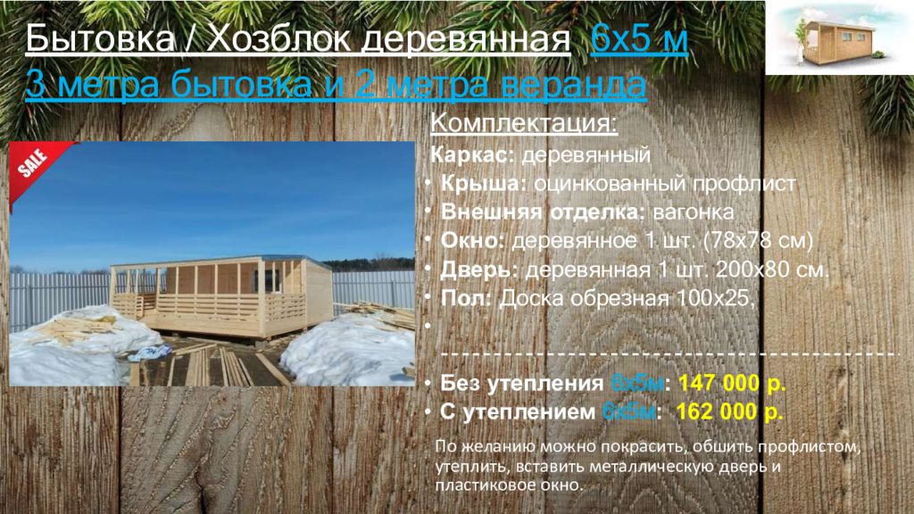 Слайд 11: Бытовка / Хозблок деревянная 6х5 м 3 метра бытовка и 2 метра веранда