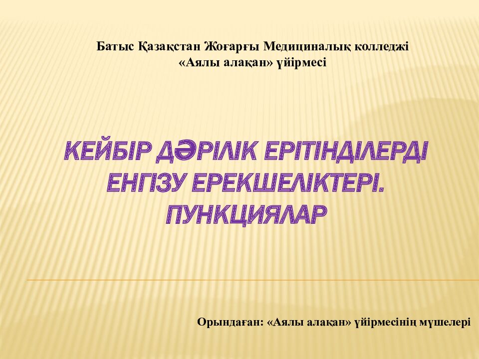 Первый слайд презентации: Кейбір дәрілік ерітінділерді енгізу ерекшеліктері. Пункциялар