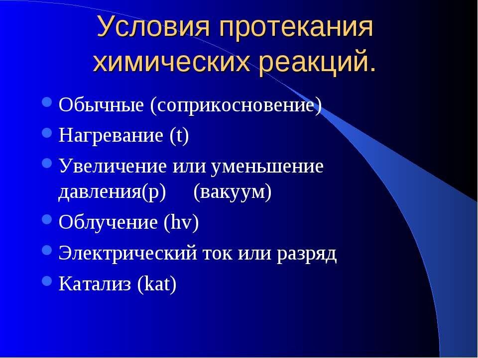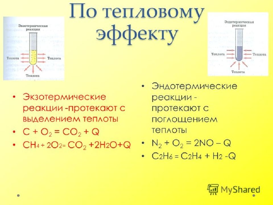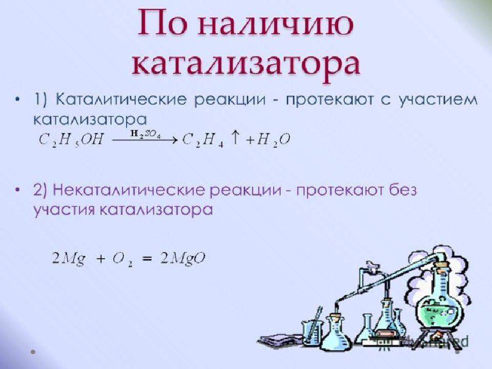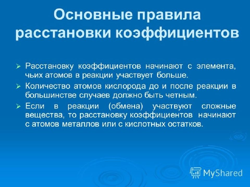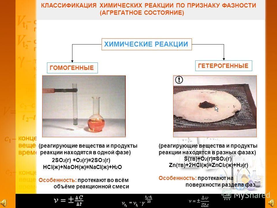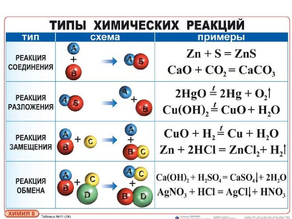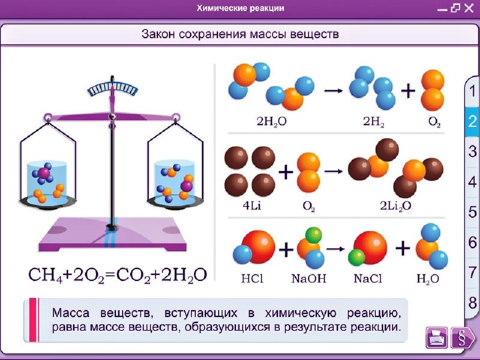 В отличие от математических уравнений, в уравнениях химических реакций нельзя переставлять левую и правую части. Вещества в левой части уравнения химической реакции называются реагентами, а в правой - продуктами реакции. Слева направо идет прямая реакция. Справа налево – обратная реакция.
