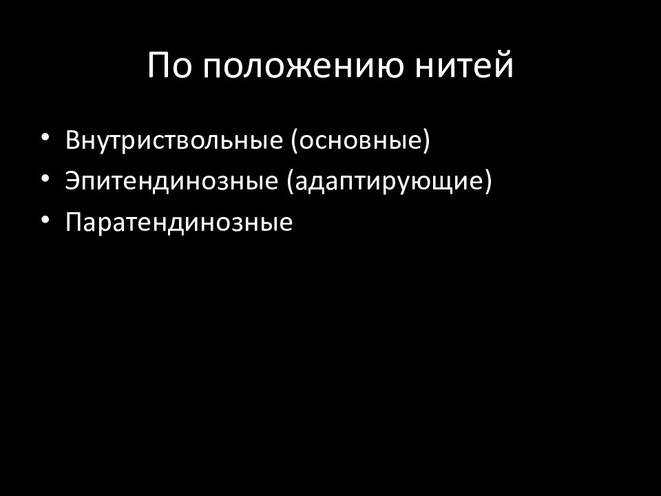 Внутриствольные (основные) Эпитендинозные (адаптирующие) Паратендинозные