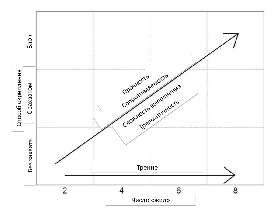 Способ скрепления Без захвата С захватом Блок Число «жил» Прочность Сопротивляемость Сложность выполнения Травматичность Трение