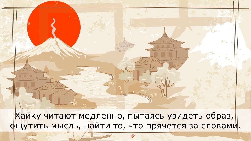 Хайку читают медленно, пытаясь увидеть образ, ощутить мысль, найти то, что прячется за словами.