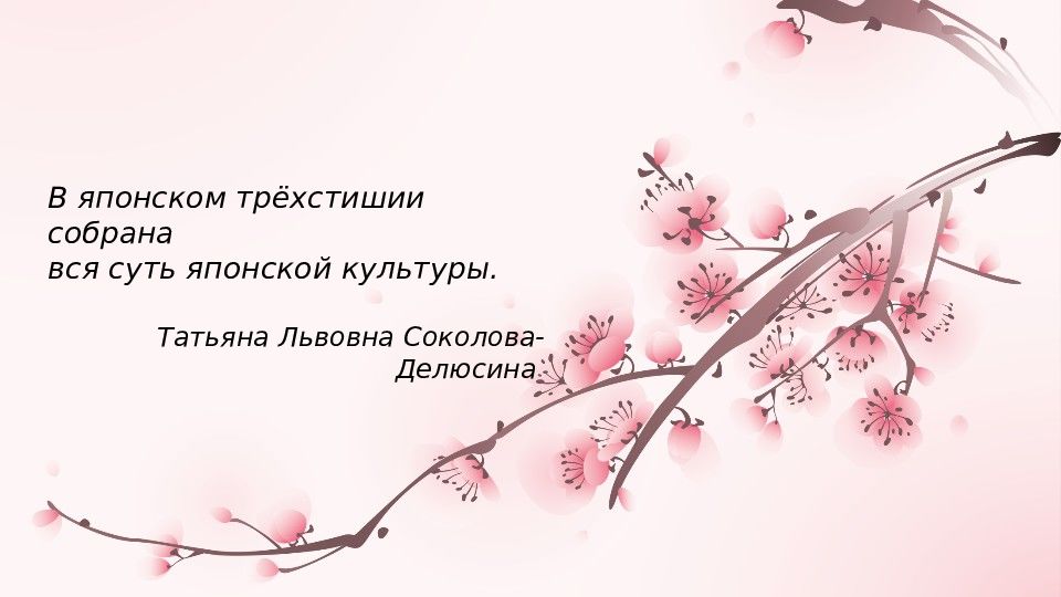 В японском трёхстишии собрана вся суть японской культуры. Татьяна Львовна Соколова- Делюсина