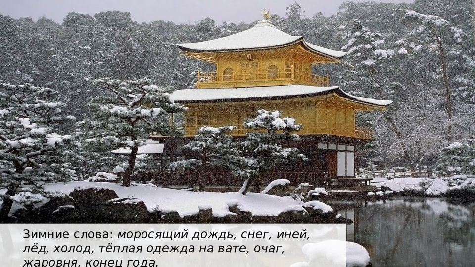 Зимние слова: моросящий дождь, снег, иней, лёд, холод, тёплая одежда на вате, очаг, жаровня, конец года.