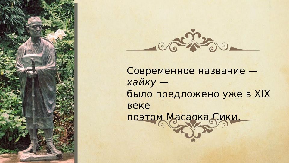 Современное название — хайку — было предложено уже в XIX веке поэтом Масаока Сики.