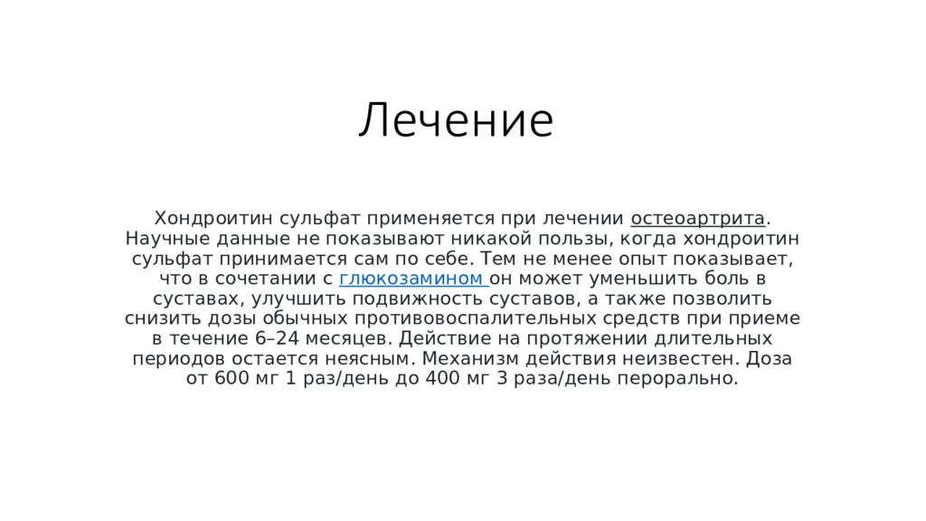 Последний слайд презентации: Хондроитинсульфат: Лечение