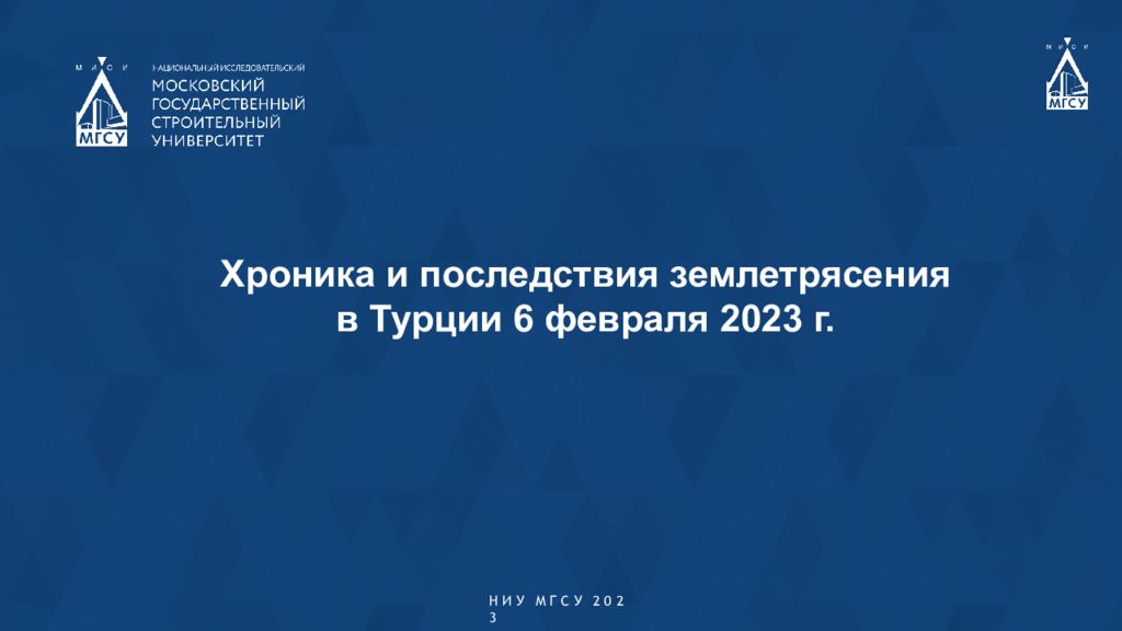 Н И У М Г С У 2 0 2 3 Хроника и последствия землетрясения в Турции 6 февраля 2023 г.