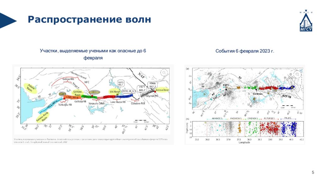 5 Распространение волн Участки, выделяемые учеными как опасные до 6 февраля События 6 февраля 2023 г.