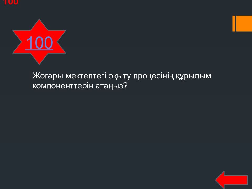 Жоғары мектептегі оқыту процесінің құрылым компоненттер ін атаңыз? 100