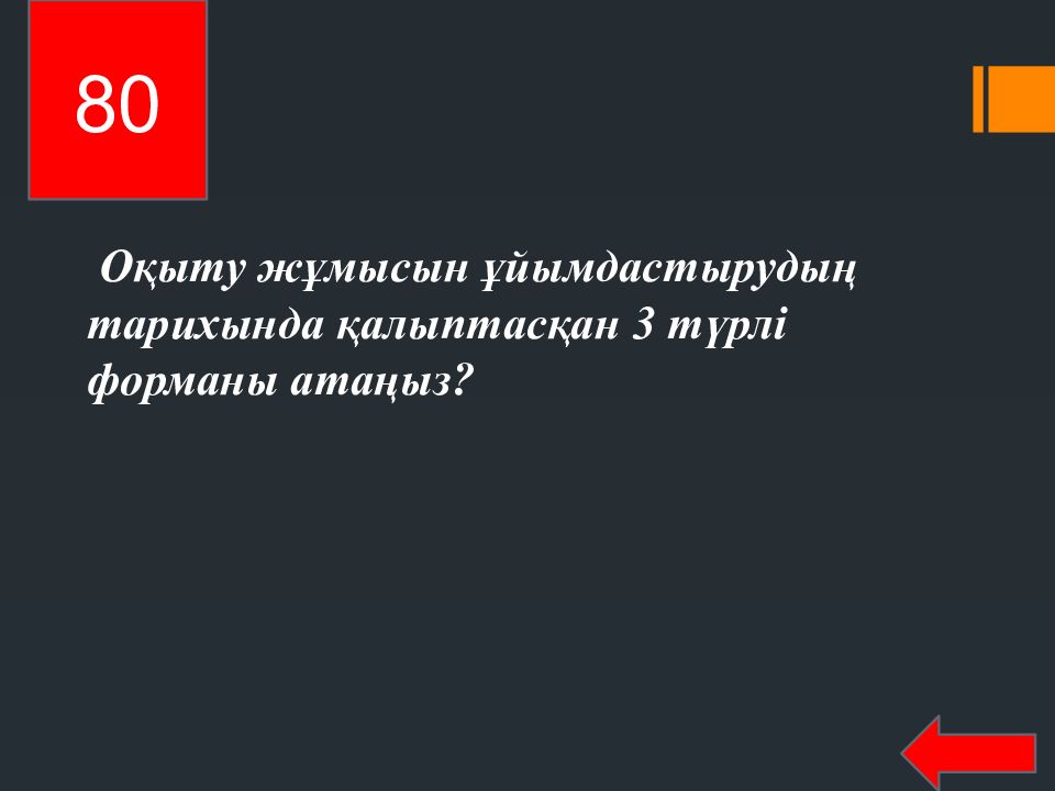 Оқыту жұмысын ұйымдастырудың тарихында қалыптасқан 3 түрлі форманы атаңыз? 80