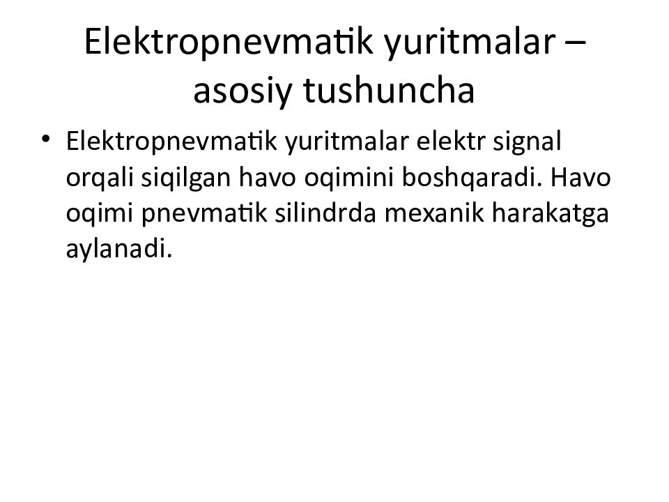 Слайд 8: Elektropnevmatik yuritmalar – asosiy tushuncha