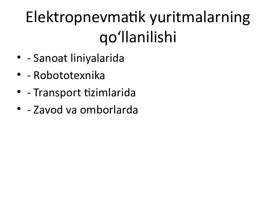 Слайд 10: Elektropnevmatik yuritmalarning qo‘llanilishi