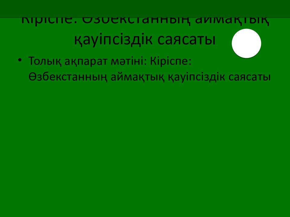 Первый слайд презентации: Кіріспе: Өзбекстанның аймақтық қауіпсіздік саясаты
