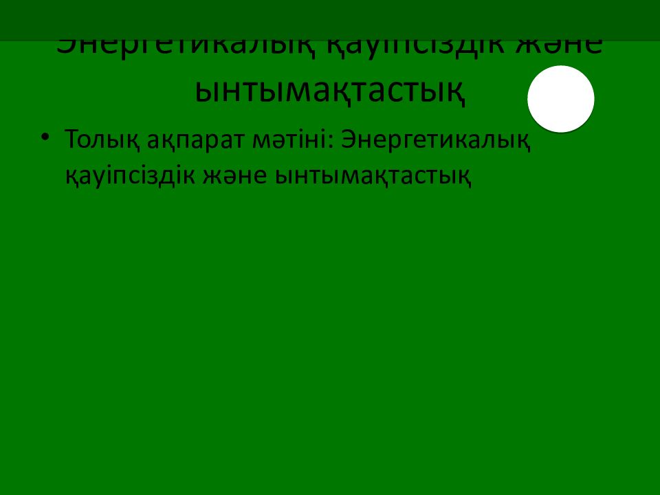 Слайд 10: Энергетикалық қауіпсіздік және ынтымақтастық
