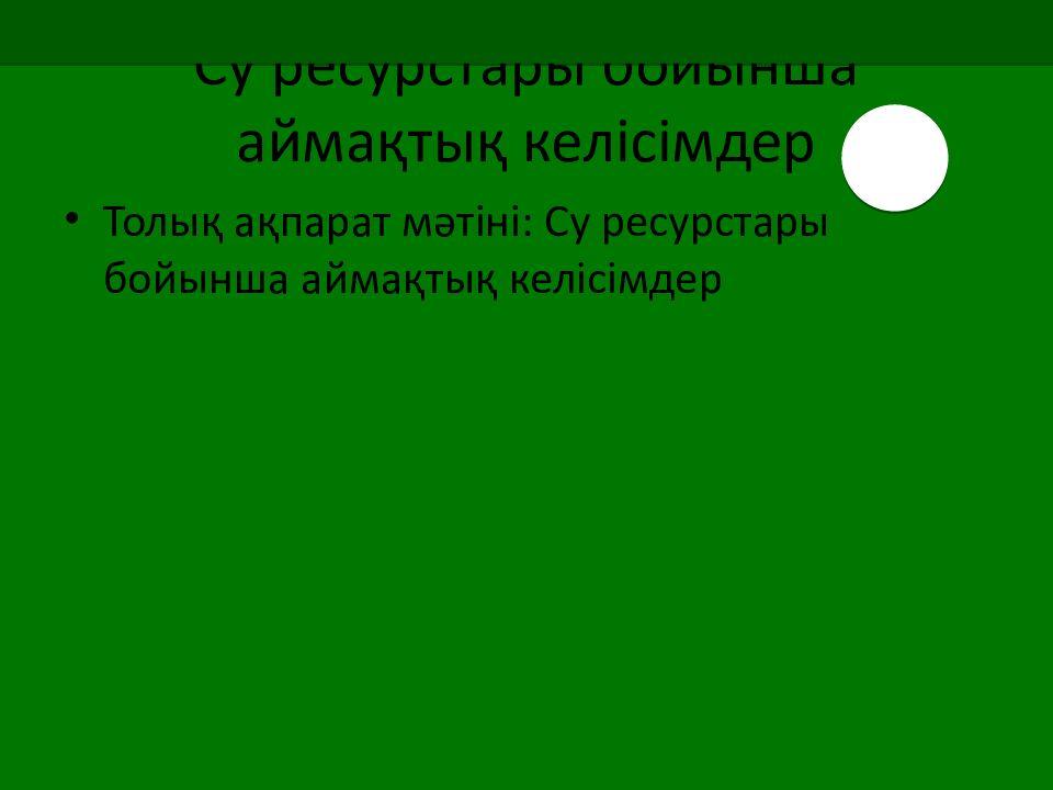 Слайд 9: Су ресурстары бойынша аймақтық келісімдер