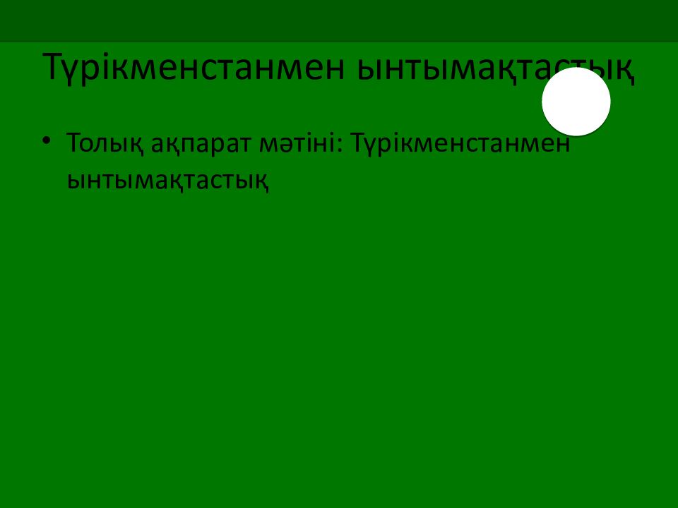 Слайд 7: Түрікменстанмен ынтымақтастық