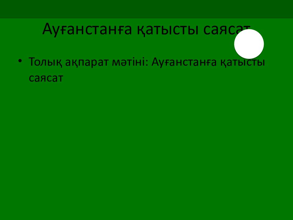 Толық ақпарат мәтіні: Ауғанстанға қатысты саясат