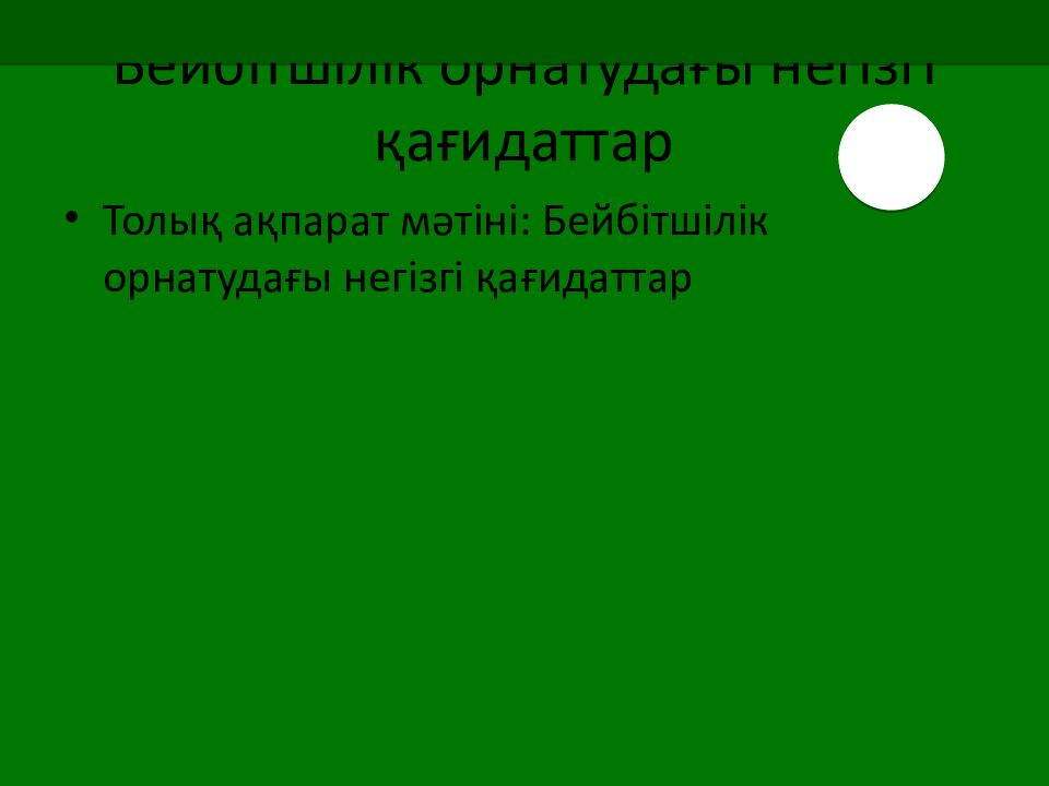 Слайд 2: Бейбітшілік орнатудағы негізгі қағидаттар