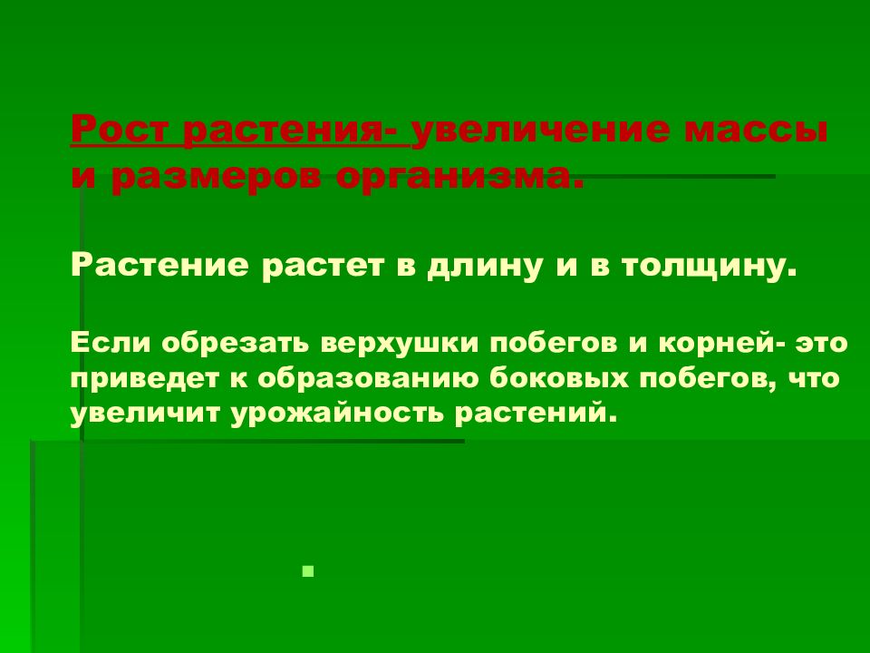 Цели урока: изучить рост и развитие растений, способы формирования кроны растений.