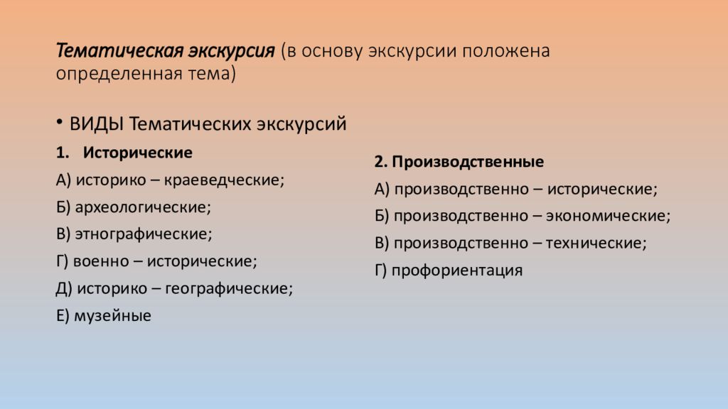 Слайд 3: Тематическая экскурсия (в основу экскурсии положена определенная тема)