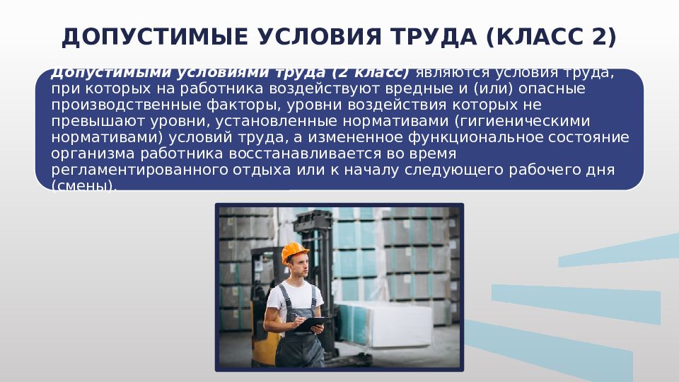 Лектор: к.т.н., доцент кафедры Безопасности жизнедеятельности Семейкин А.Ю. ТЕОРИЯ И ПРАКТИЧЕСКИЕ АСПЕКТЫ ПРОВЕДЕНИЯ СПЕЦИАЛЬНОЙ ОЦЕНКИ УСЛОВИЙ ТРУДА МОДУЛЬ 2. ПОРЯДОК ПРОВЕДЕНИЯ СОУТ Лекция 2.3 для студентов очной и заочной формы обучения, а также специалистов предприятий и организаций: Классификация условий труда
