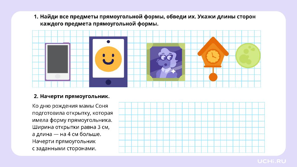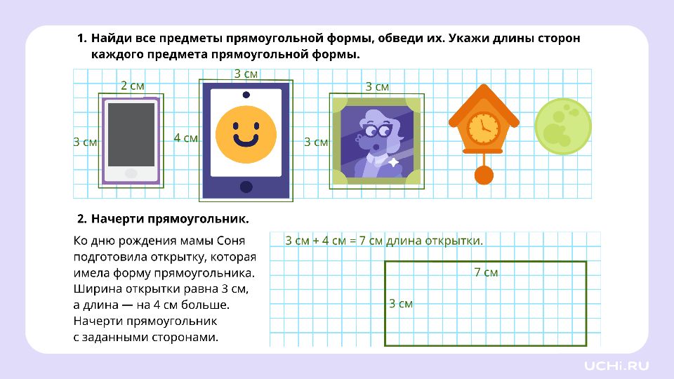2 класс Изображение на листе в клетку прямоугольника с заданными длинами сторон
