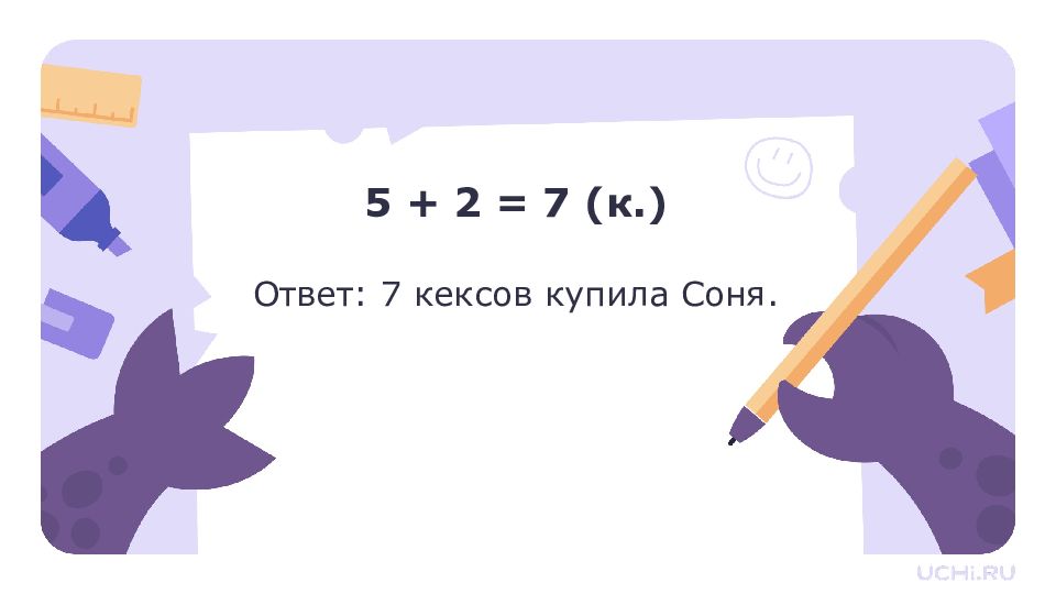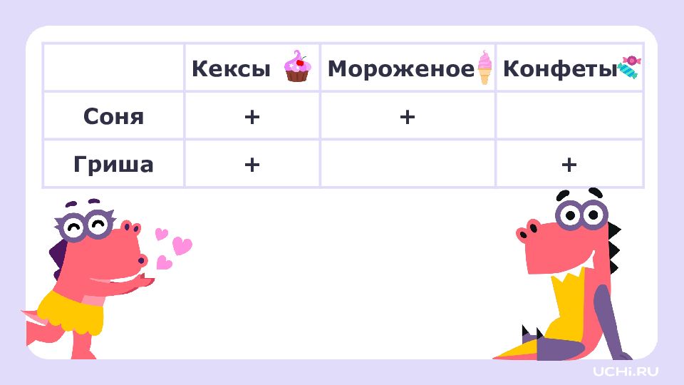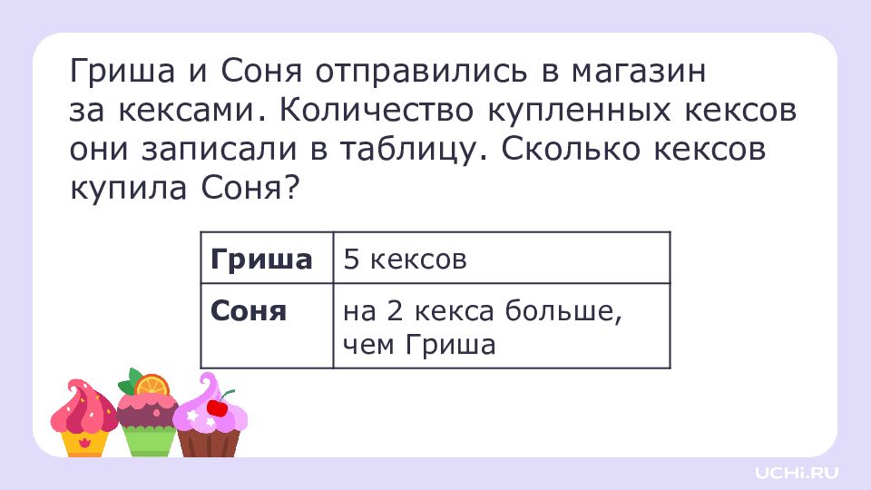 Гриша 5 кексов Соня н а 2 кекса больше, чем Гриша Гриша и Соня отправились в магазин за кексами. Количество купленных кексов они записали в таблицу. Сколько кексов купила Соня?
