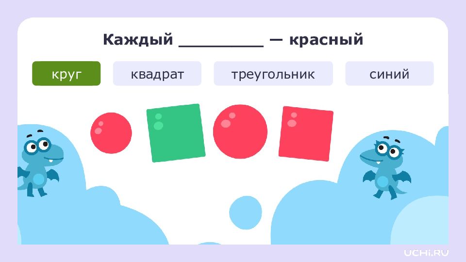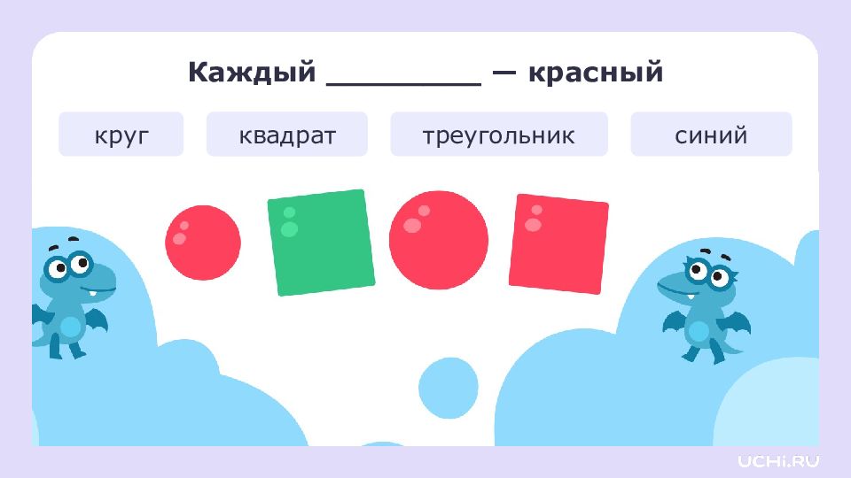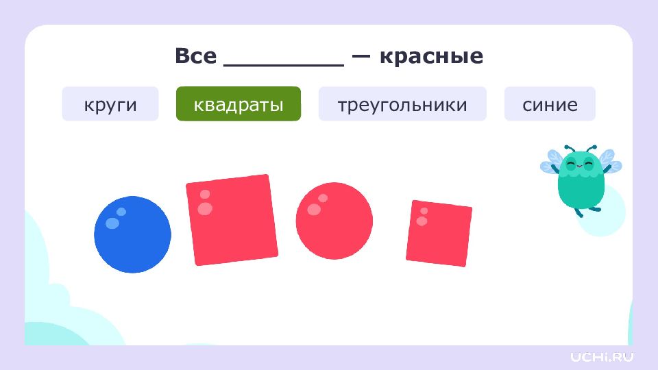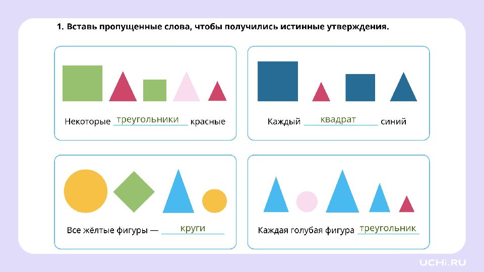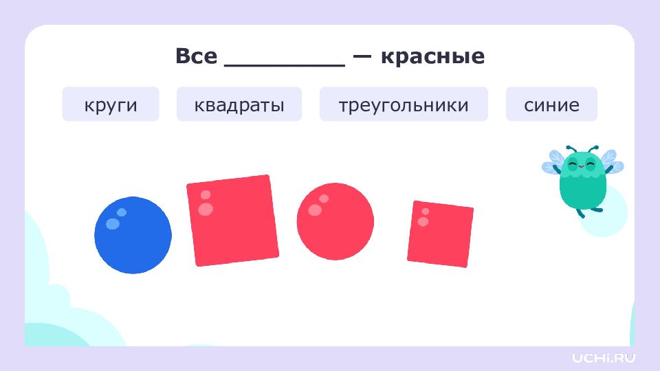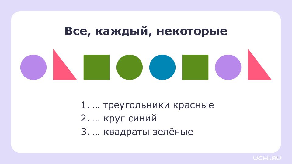 … треугольники красные … круг синий … квадраты зелёные Все, каждый, некоторые