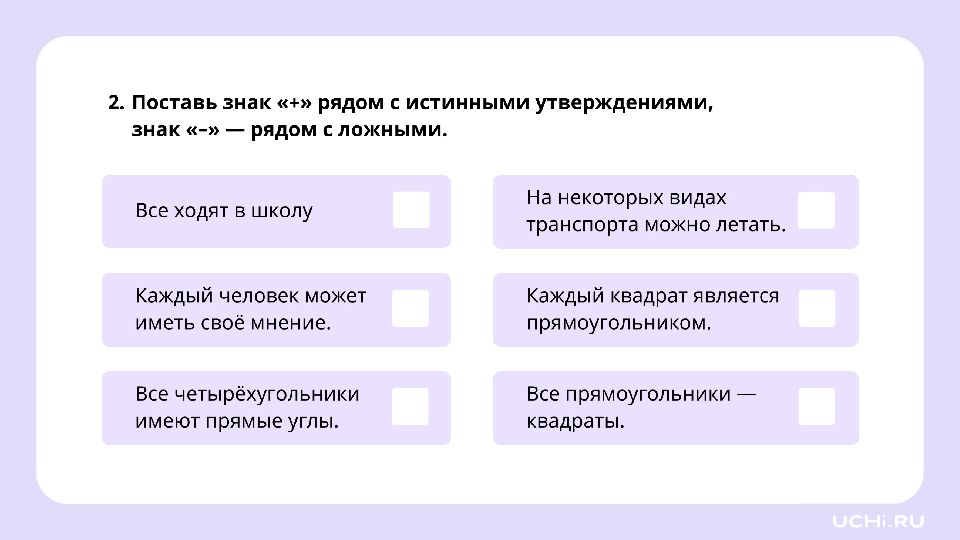 2 класс Конструирование утверждений с использованием слов «каждый», «все», «некоторые»