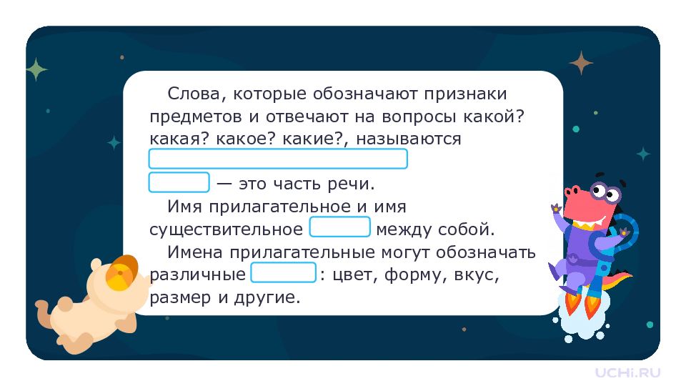 Помогите Грише выполнить задания и завершить путешествие по планете Прилагательные