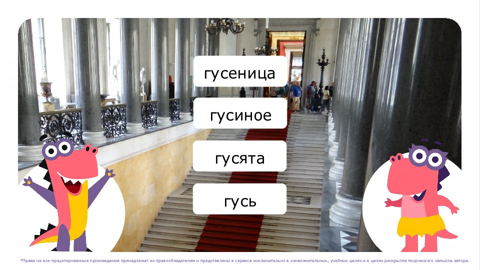 гусь гусята гусеница гусиное *Права на все процитированные произведения принадлежат их правообладателям и представлены в сервисе исключительно в ознакомительных, учебных целях и в целях раскрытия творческого замысла автора.