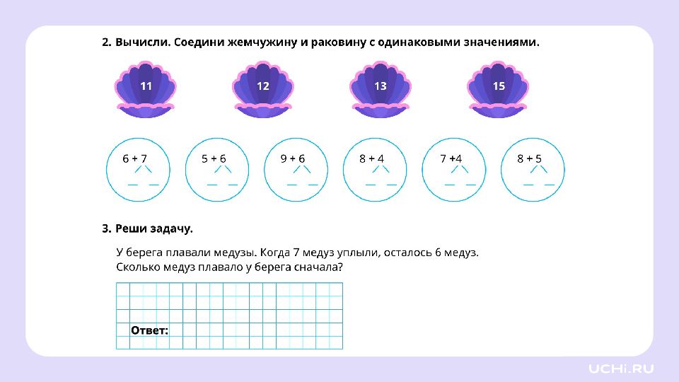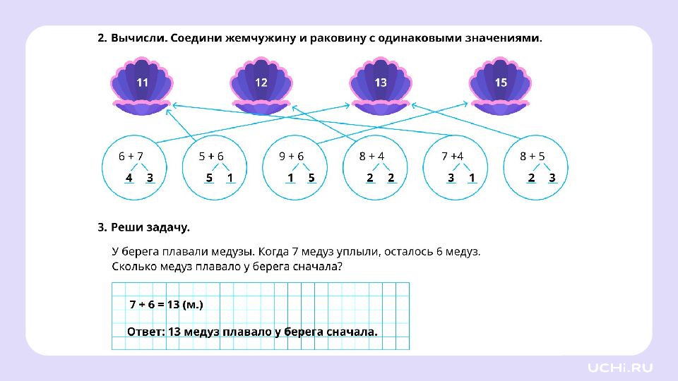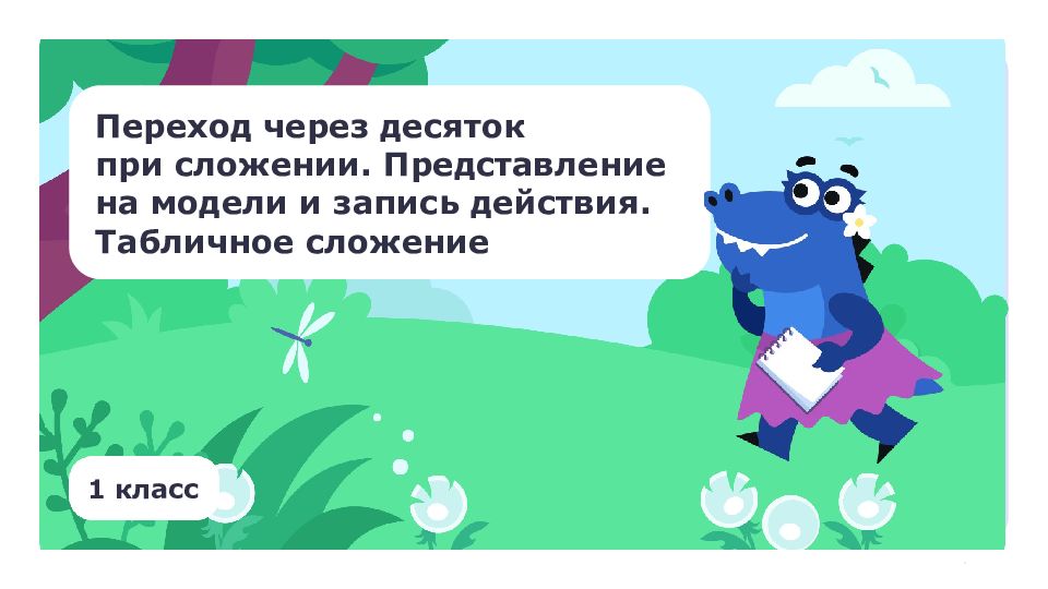 1 класс Переход через десяток при сложении. Представление на модели и запись действия. Табличное сложение