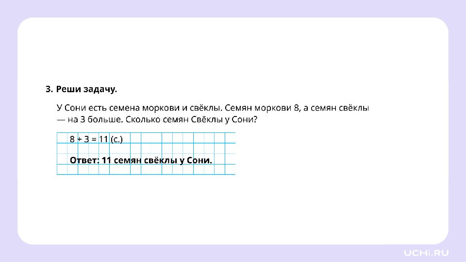 У Сони в классе 9 мальчиков, а девочек на 3 больше. Сколько девочек в классе у Сони? Мальчики — 9 ч. Девочки — ? ч., на 3 больше