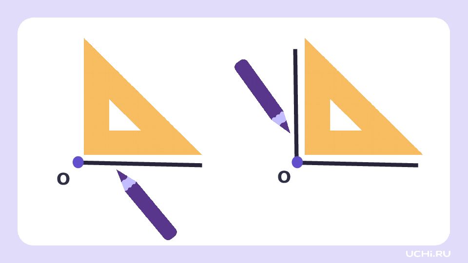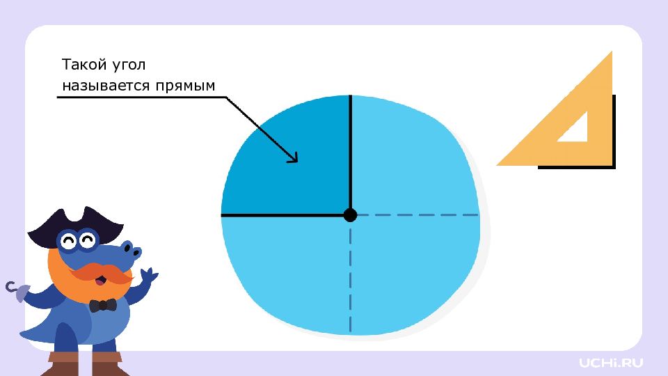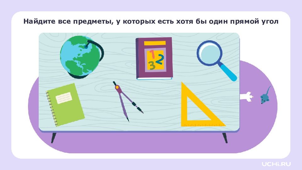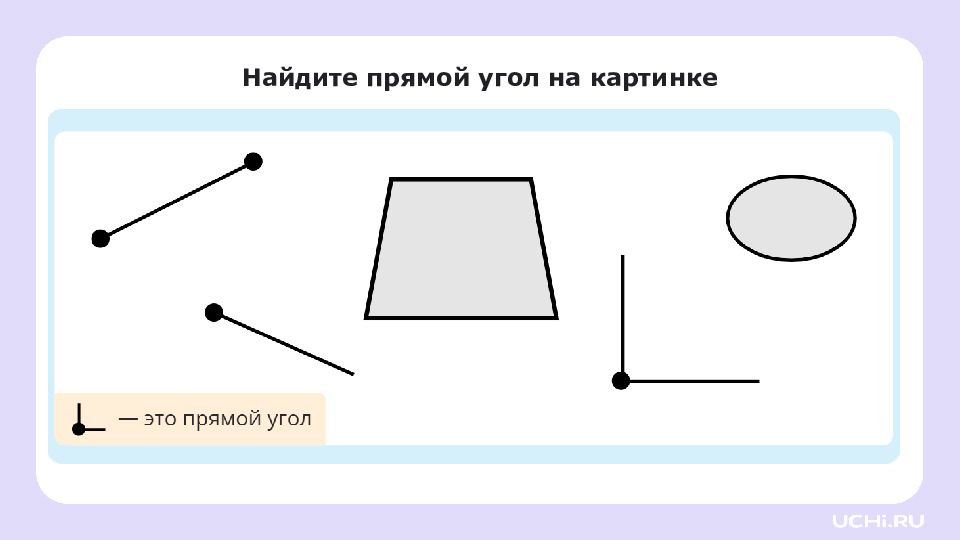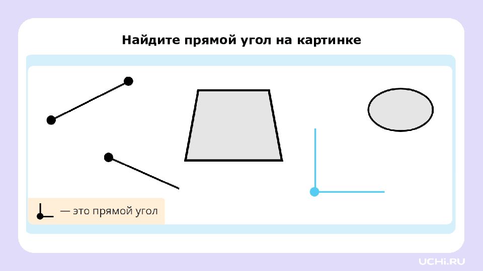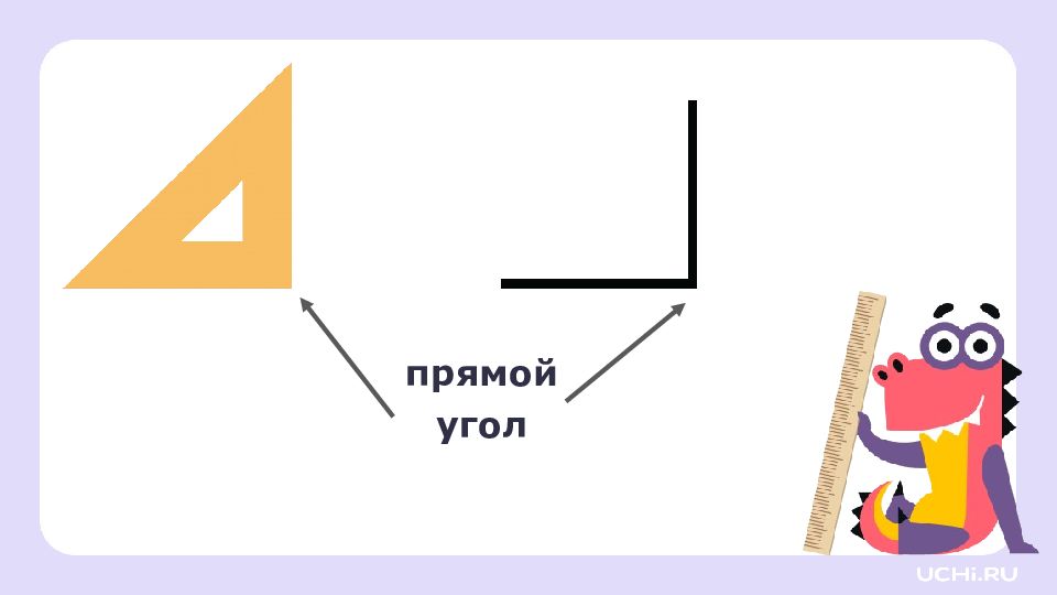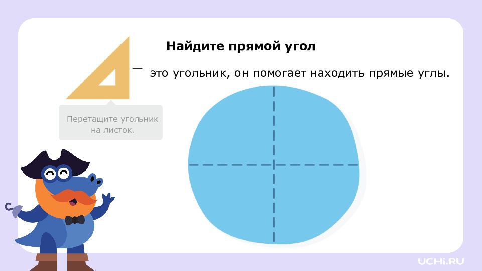 Перетащите угольник на листок. это угольник, он помогает находить прямые углы. Найдите прямой угол