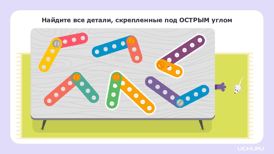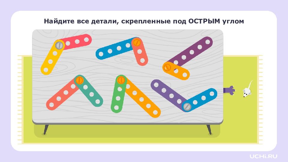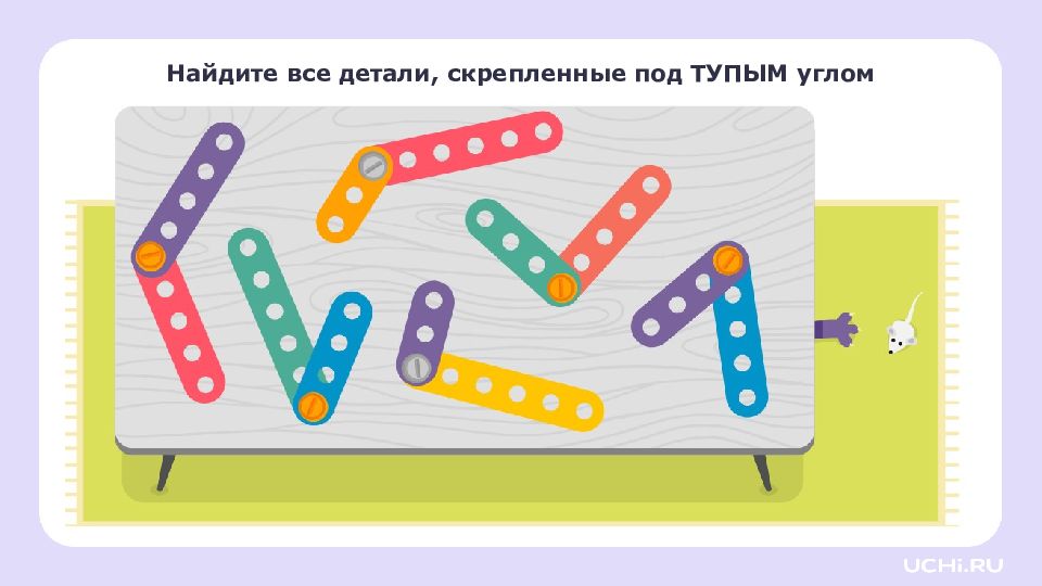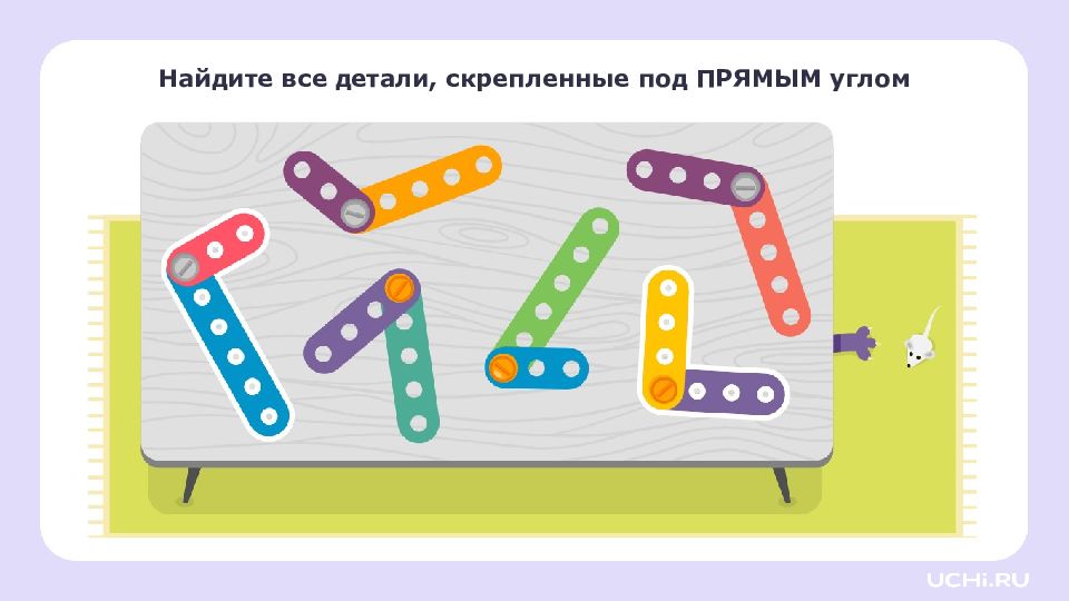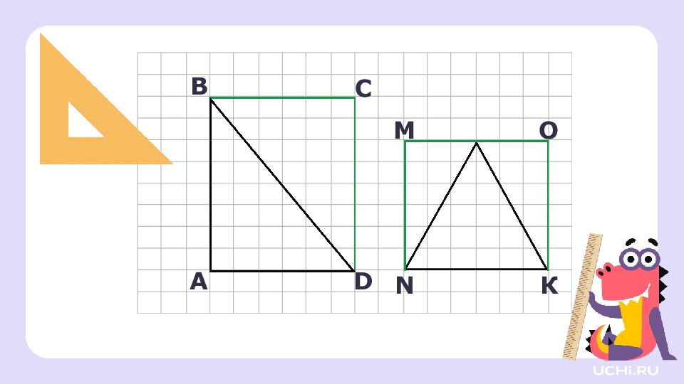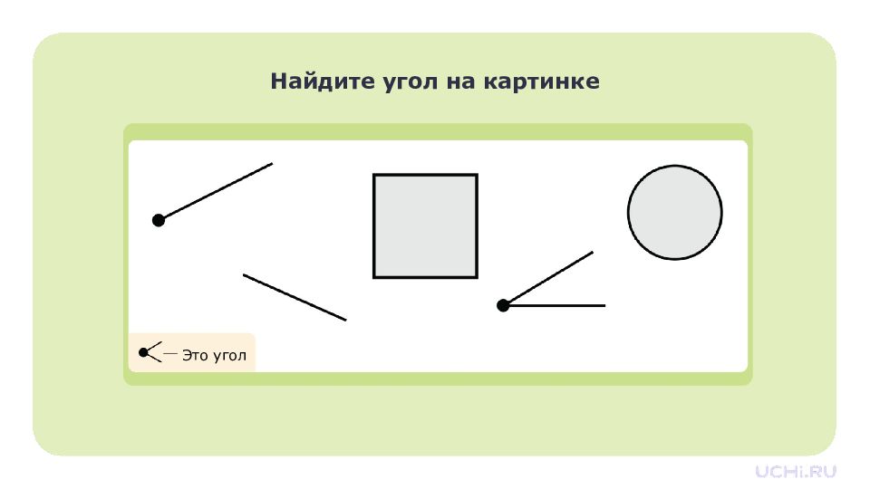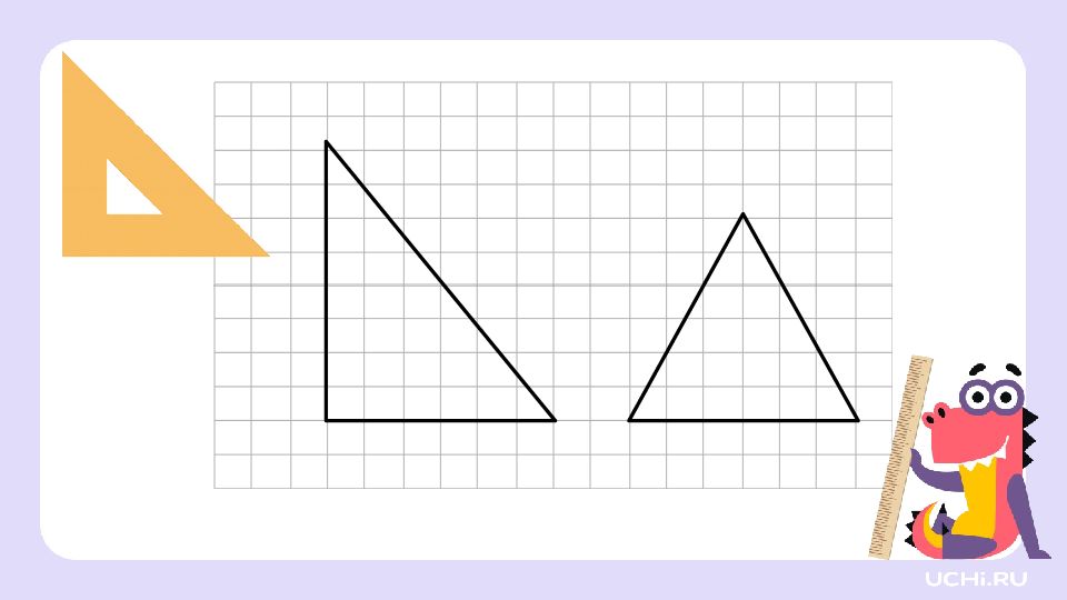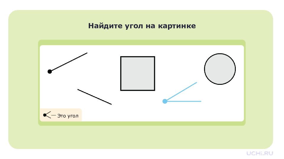 Перетащите угольник на листок. это угольник, он помогает находить прямые углы. Найдите прямой угол