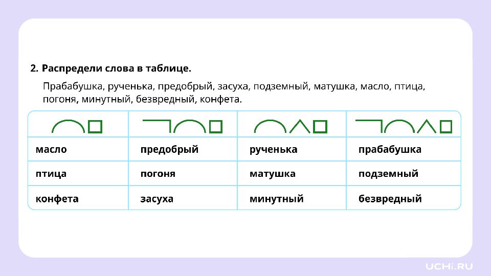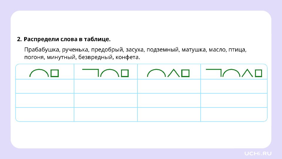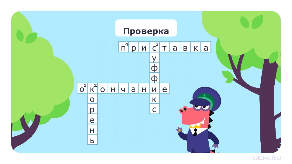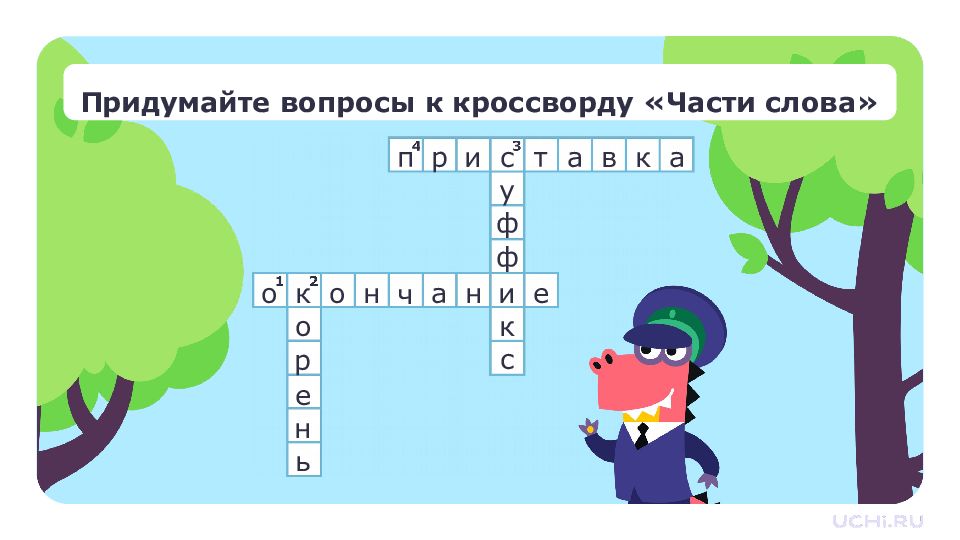 п у ф ф к с р и с т а в к а о к о н ч а н и о р н ь е е Придумайте вопросы к кроссворду «Части слова»
