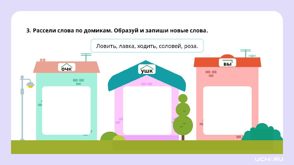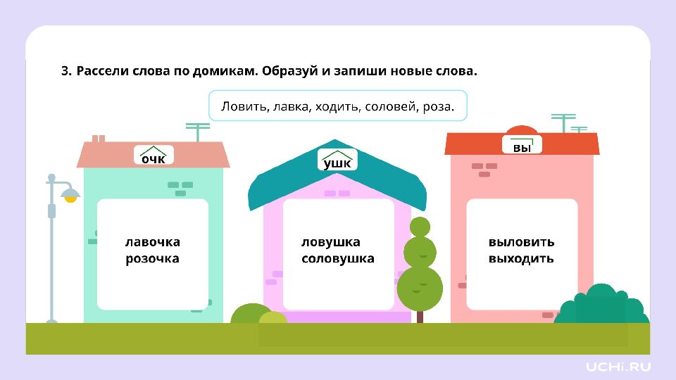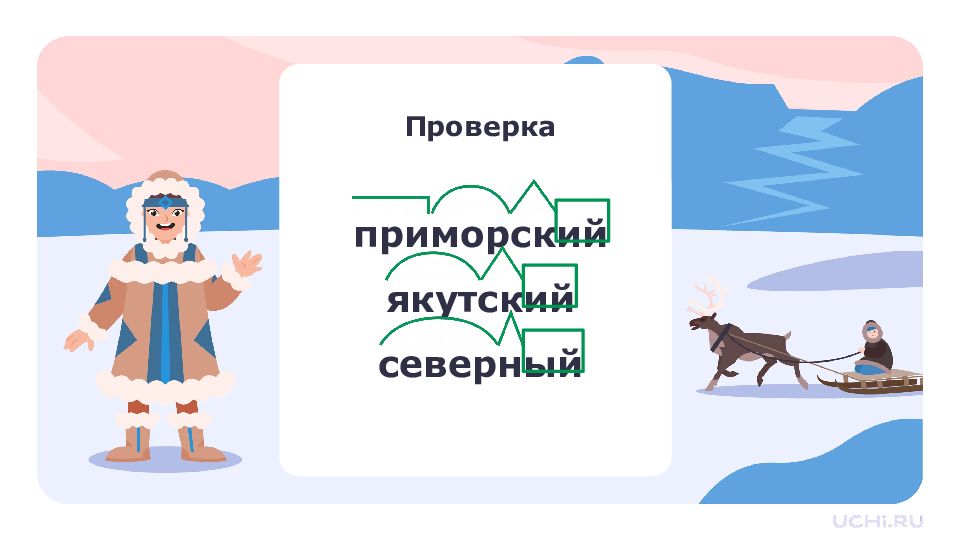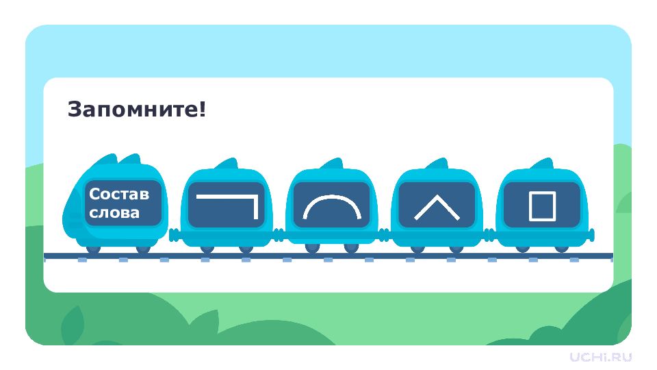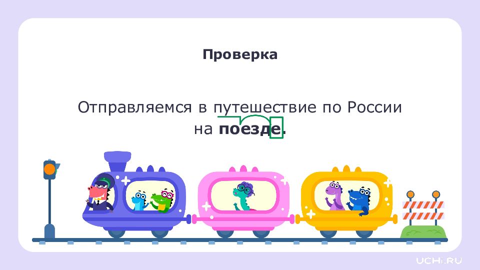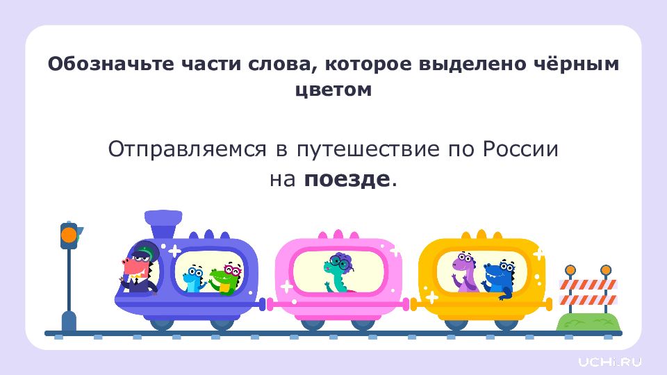 Обозначьте части слова, которое выделено чёрным цветом Отправляемся в путешествие по России на поезде.