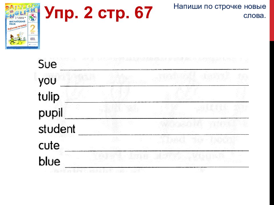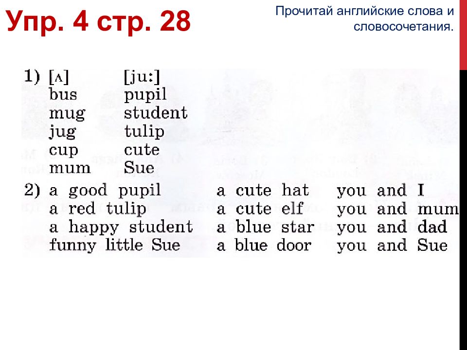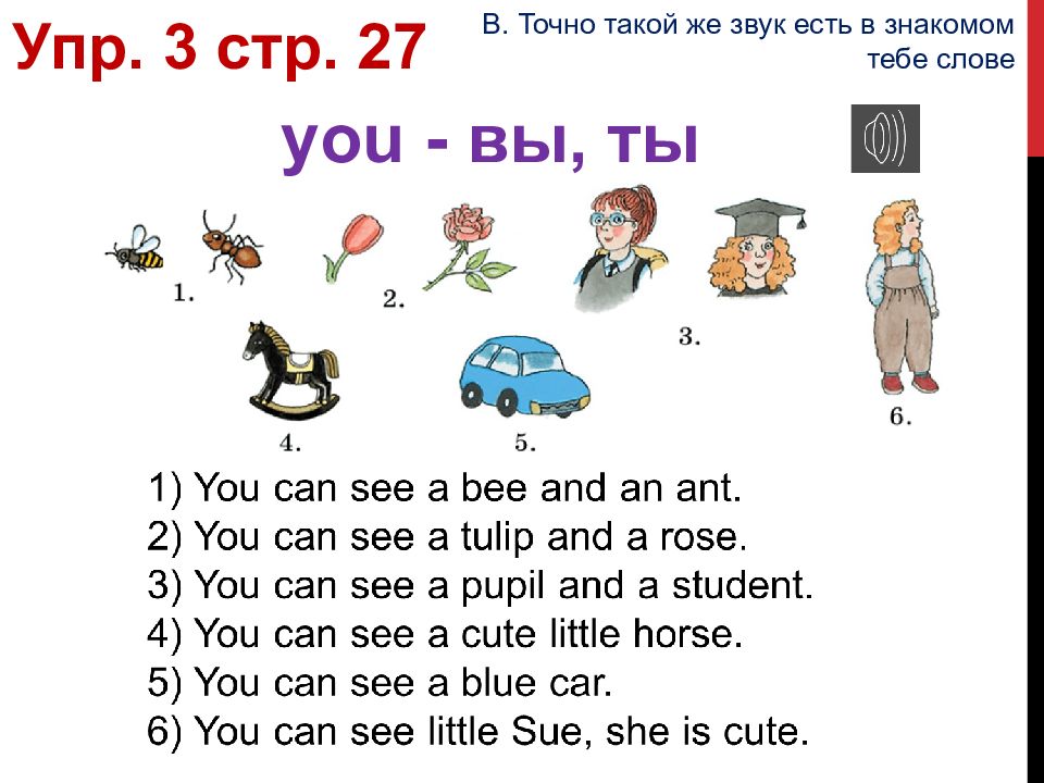 you - вы, ты Упр. 3 стр. 27 В. Точно такой же звук есть в знакомом тебе слове