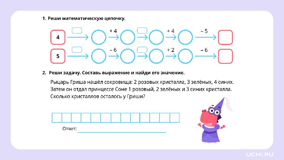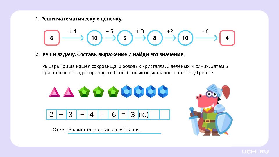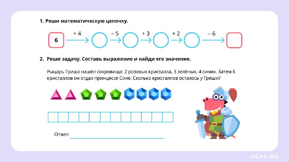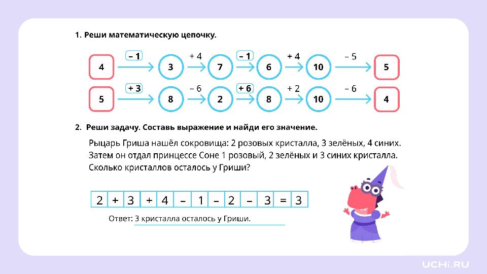 1 класс Выполнение 1–3-шаговых инструкций, связанных с вычислениями