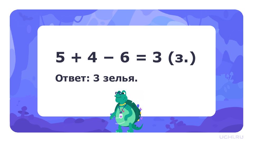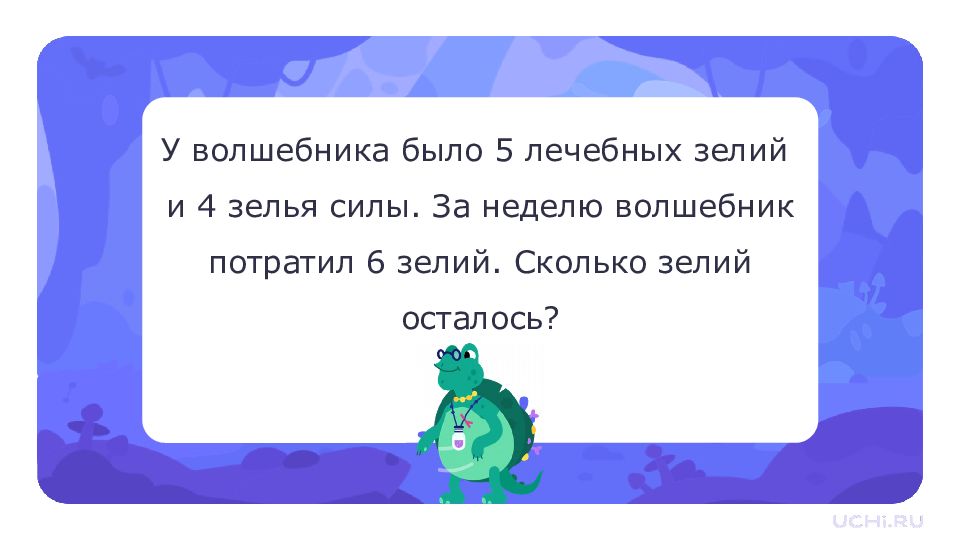 У волшебника было 5 лечебных зелий и 4 зелья силы. За неделю волшебник потратил 6 зелий. Сколько зелий осталось?