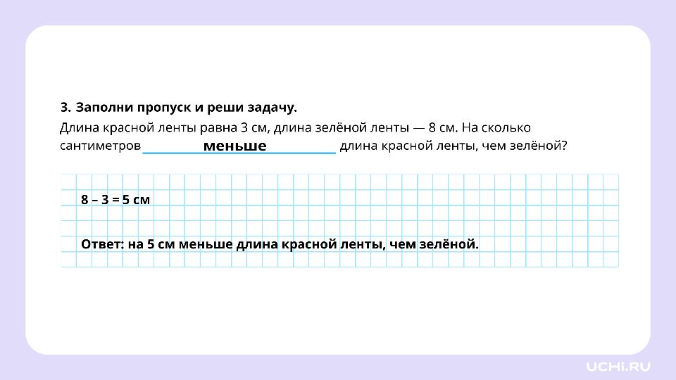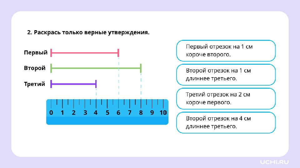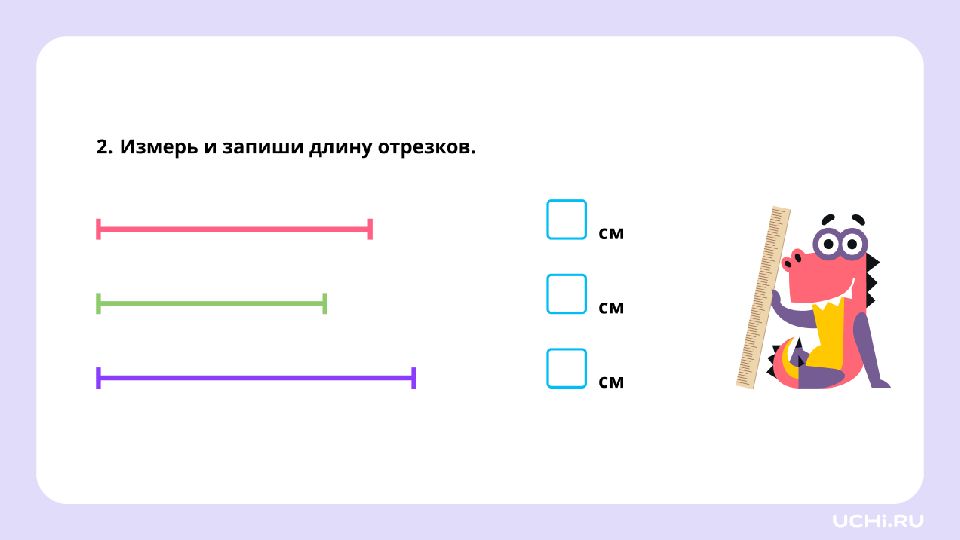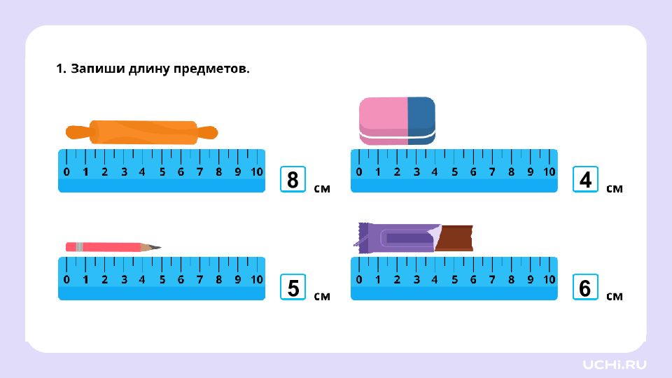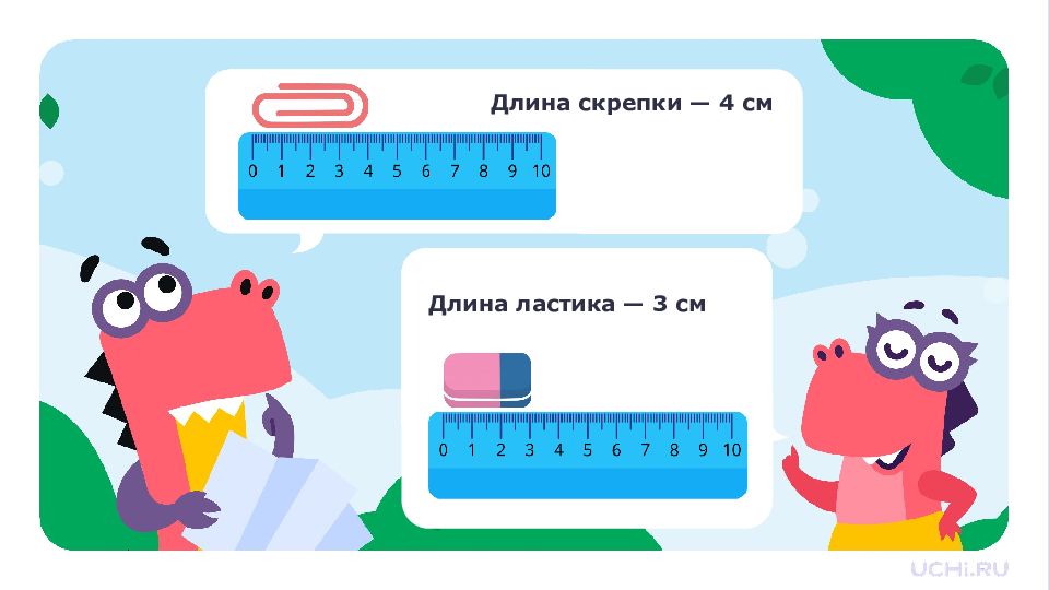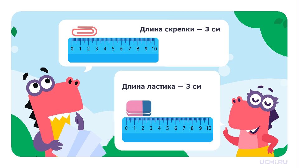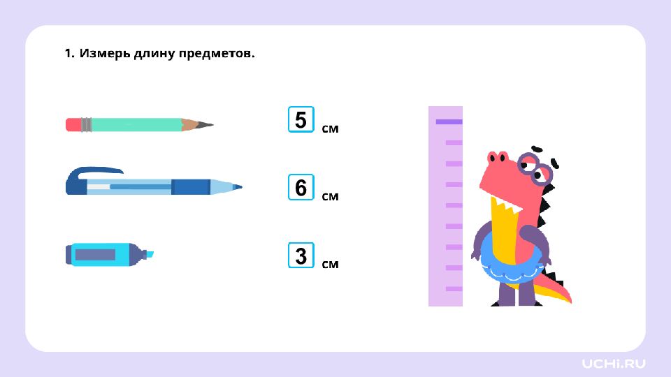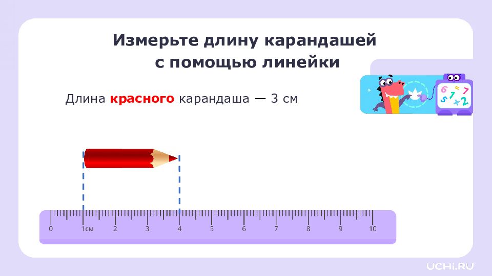 Измерьте длину карандашей с помощью линейки Длина красного карандаша — 3 см