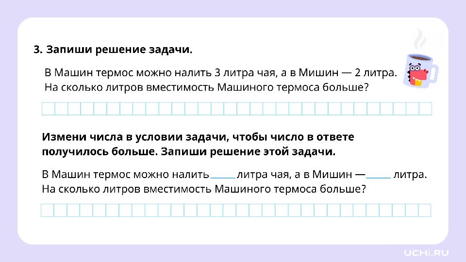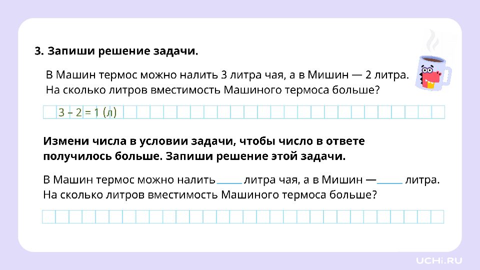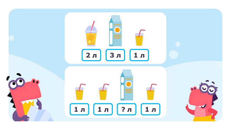1 класс Зависимость между данными и искомой величиной в текстовой задаче. Литр