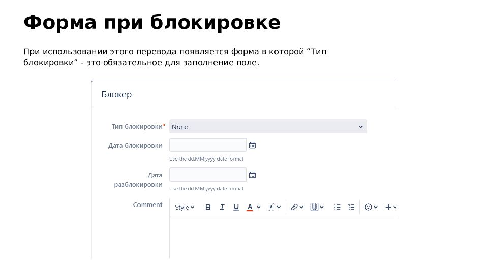 При использовании этого перевода появляется форма в которой “Тип блокировки” - это обязательное для заполнение поле.