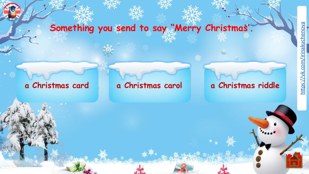 Something you send to say “Merry Christmas’. a Christmas card a Christmas carol a Christmas riddle