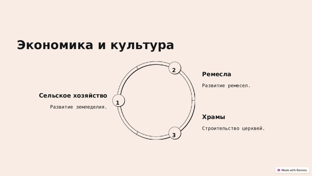 Экономика и культура Сельское хозяйство Развитие земледелия. 1 Ремесла Развитие ремесел. 2 Храмы Строительство церквей. 3