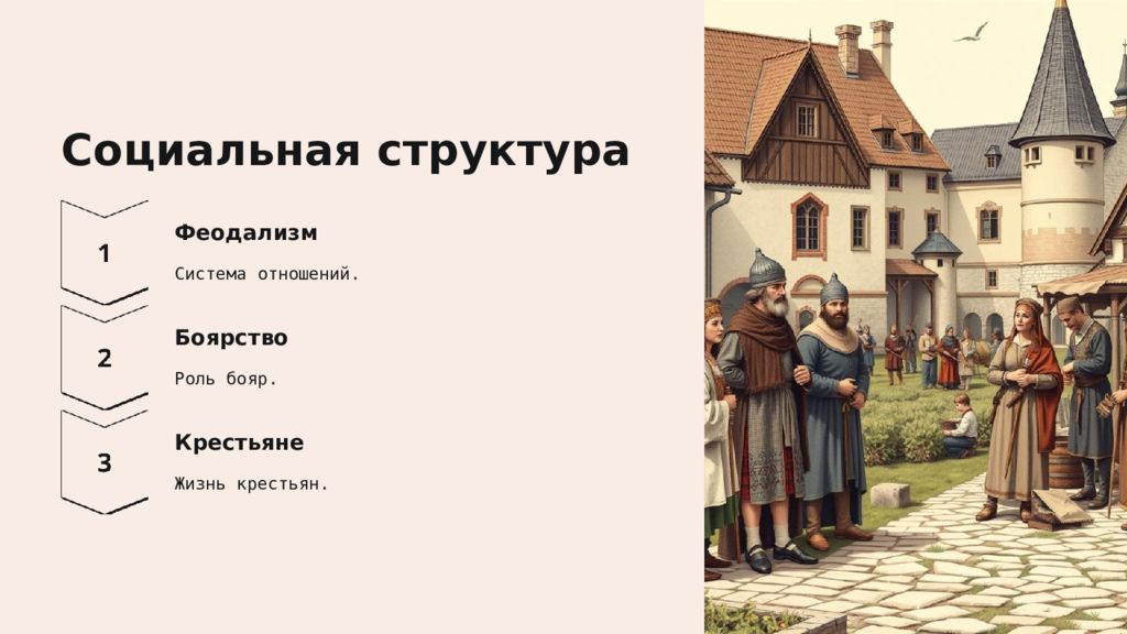 Социальная структура Феодализм Система отношений. Боярство Роль бояр. Крестьяне Жизнь крестьян.